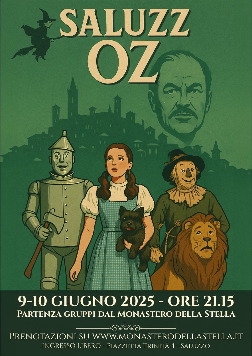 In una sera d’estate, tra sogno e favella, si sveglia dal sonno la piccola Dorotella. Si ritrova in un mondo strano e incantato, è la terra di Saluzz-OZ, mai visto, mai immaginato! Qui ogni strada ha una storia da raccontare, ma se a casa vorrà tornare, il Mago del Palazzo di Smeraldo dovrà incontrare e la strega dell’Ovest dovrà sfidare Tre amici lungo il cammino troverà: un leone che coraggio le darà, un boscaiolo di latta, dal cuore sincero, uno spaventapasseri saggio e vero. Dal punto in cui la Stella verde splenderà, un lungo viaggio la aspetterà: fino a quando con le scarpette rosse, lucenti e leggere, un turbine la guiderà tra mille chimere, per tornare a casa dove, tra abbracci sinceri, battono forti gli affetti veri.